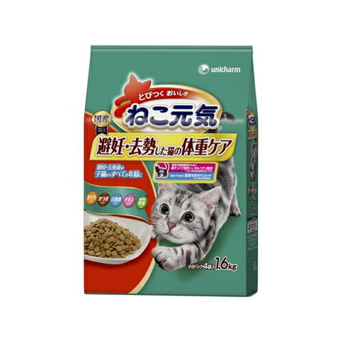 ユニ・チャーム ねこ元気避妊・去勢した猫の体重ケアまぐろ・かつお・白身魚・チキン・緑黄色野菜入り1.6kg【キャットフード ドライ】