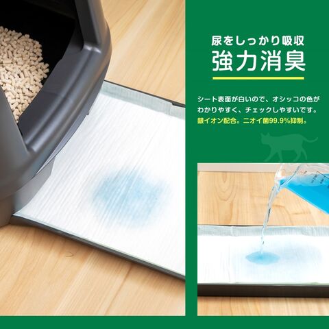 ●1週間分の尿をしっかり吸収し、抗菌剤がニオイを強力に抑えます。 ※愛猫1頭(体重8kgまで)の場合。ウンチをした場合は早く取り除いてください。