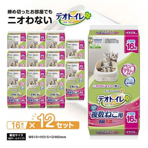 ユニ・チャーム デオトイレ 複数ねこ用 消臭・抗菌シート 16枚 ×12個セット (約)高さ295×幅145×奥行き140(mm)