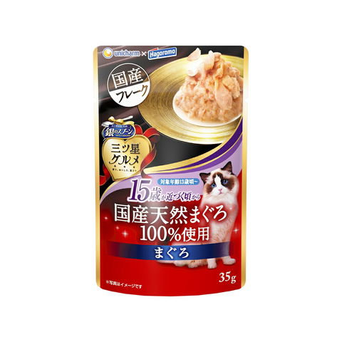 ユニ・チャーム 銀のスプーン 三ツ星グルメパウチ 国産天然まぐろ100% フレーク 15歳が近づく頃から まぐろ 35g 【キャットフード ウェット】 キャットフード 猫のえさ ねこのえさ 猫の餌