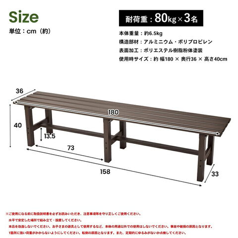 コーナンオリジナル LIFELEX アルミ縁台180cm LFX10-9654 約幅180×奥行36×高さ40cm