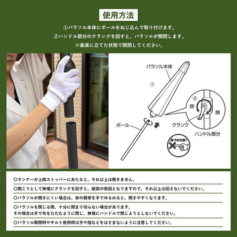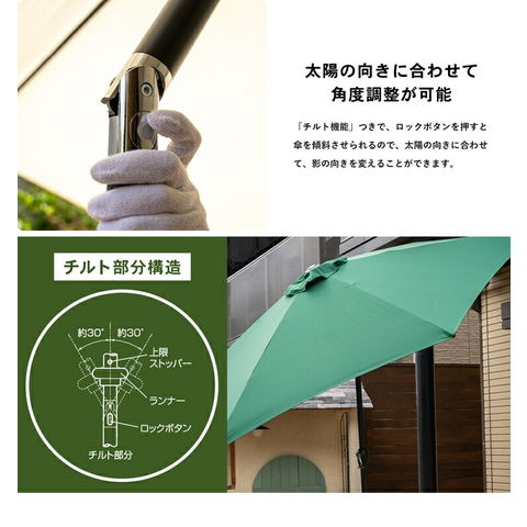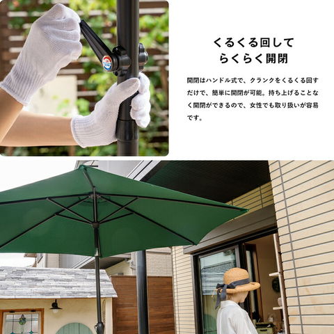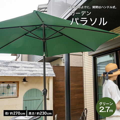 コーナンオリジナル LIFELEX パラソル 2.7m LFX10-0070 グリーン 約径268×高さ231cm