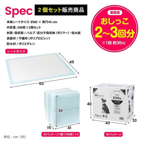 ペットシーツ 業務用ペットシーツ ワイド 400枚(100枚×4袋)×2個セット セット販売 薄型 大容量 たっぷり吸収 高分子ポリマー 吸収力抜群 エンボス加工 白色シート 多頭飼い コーナンオリジナル