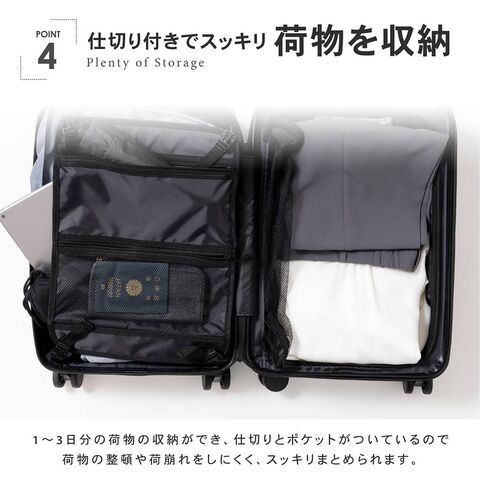 1~3日分の荷物の収納ができ、仕切りとポケットがついているので