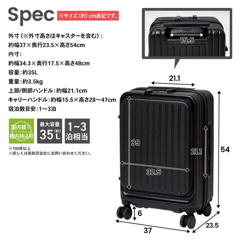 外寸の合計114.5cmなので、国内線(100席以上)の機内持ち込みが可能!