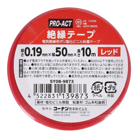 コーナンオリジナル PROACT 絶縁テープ 赤 SY08-9873 約62×50mm