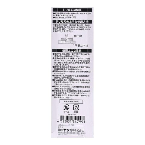 コーナンオリジナル 木工用ショートドリル ビット18mm PAGA-175