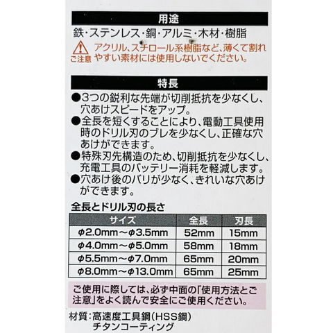 コーナンオリジナル PROACT(プロアクト) ショートドリル刃チタン 3.0mm