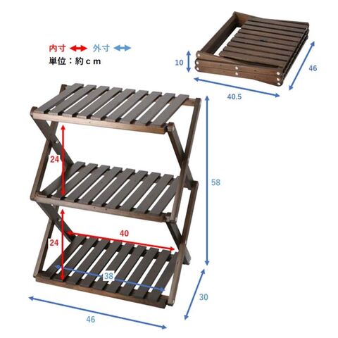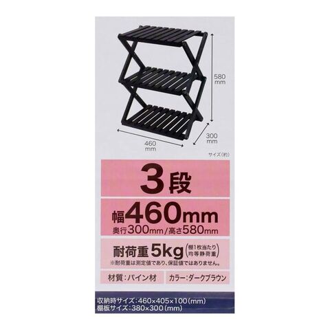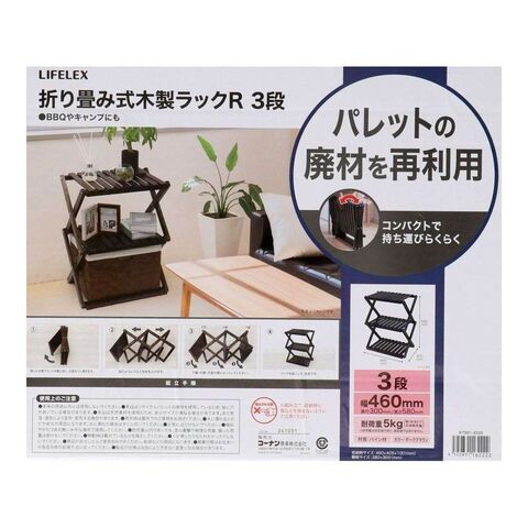 折り畳み式木製ラックR 3段 W460×D300×H580 LIFELEX