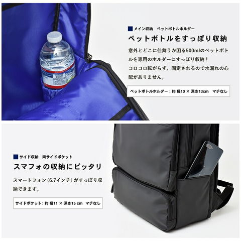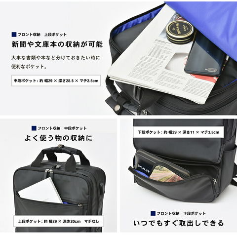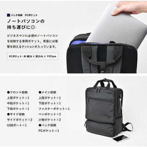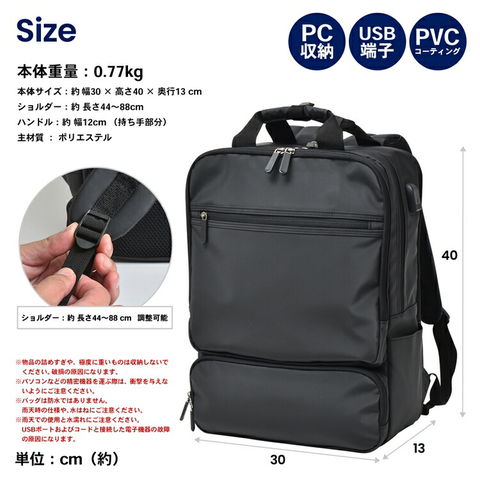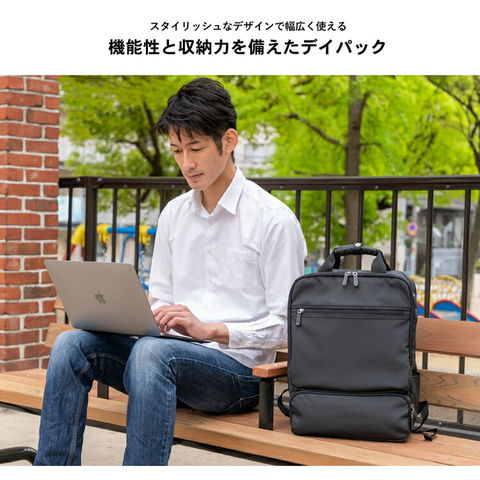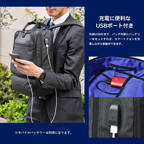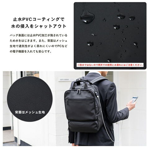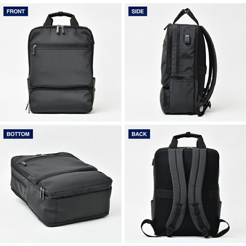 コーナンオリジナル LIFELEX USBポート付 スクエアデイパック ブラック 約幅300×奥行110+20×高さ400mm スタンダード