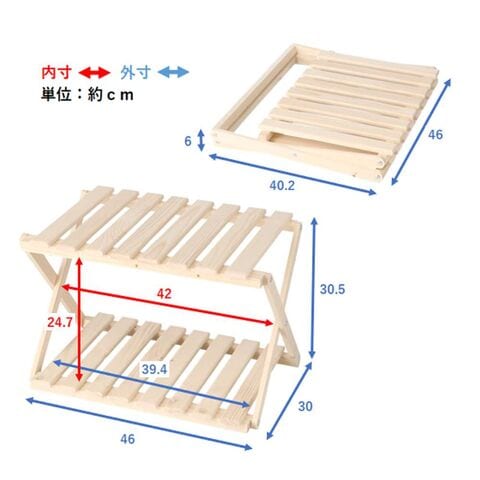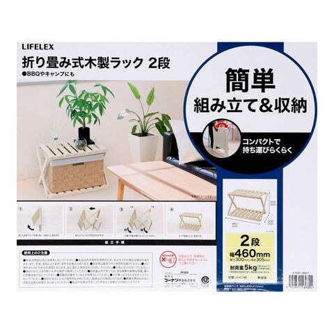 折り畳み式木製ラック 2段 W460 LIFELEX
