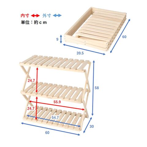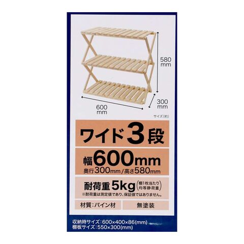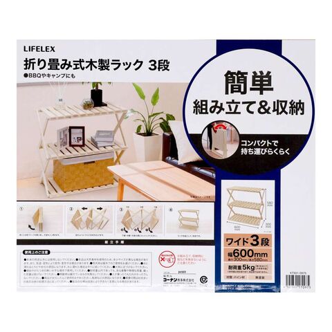 折り畳み式木製ラック ワイド3段 W600 LIFELEX