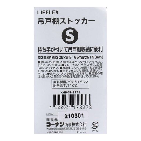 コーナンオリジナル LIFELEX 吊戸棚ストッカーS KHH05-8278 約幅305×奥行165×高さ215mm