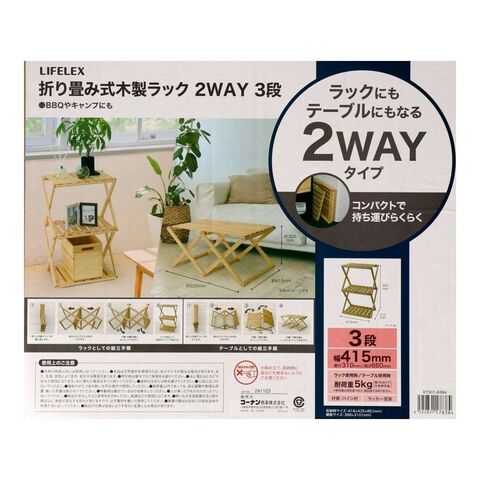 折り畳み式木製ラック 2WAY 3段 LIFELEX