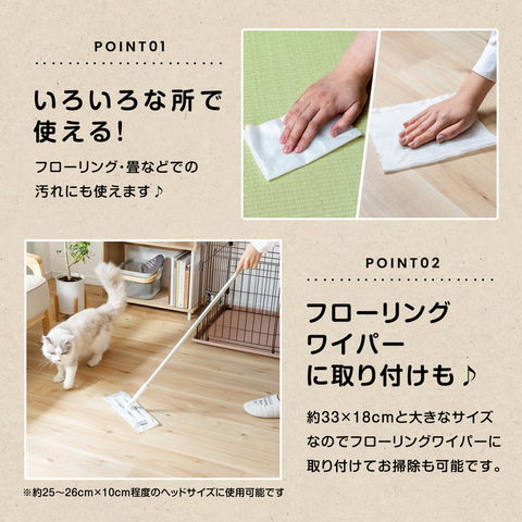 ●除菌・消臭仕様。フローリング、畳、トイレの周りの汚れにお使いいただけます。