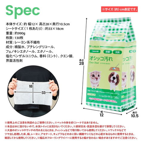 コーナンオリジナル LIFELEX ペット用お掃除シート おしっこ専用 詰替え用 130枚 詰め替え用 約33×18cm