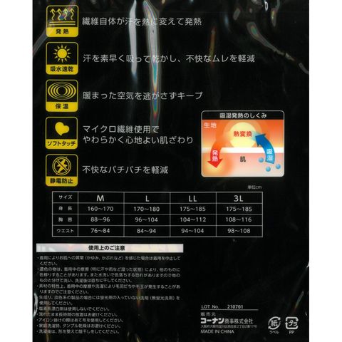 コーナンオリジナル PROACT 吸湿発熱インナータイツ ブラック M
