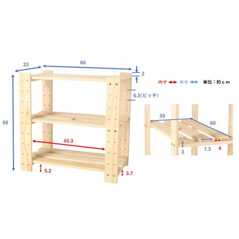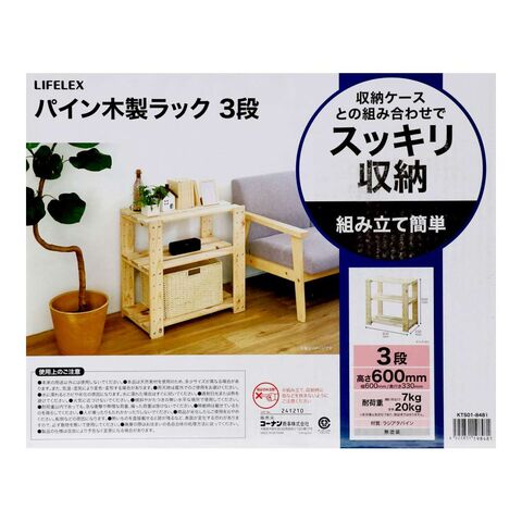 パイン木製ラック3段600 KTS01-8481 LIFELEX