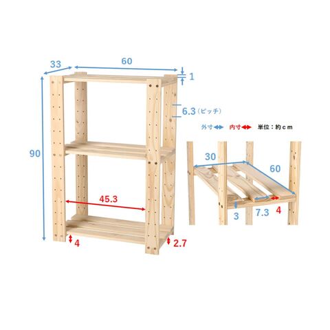 パイン木製ラック3段900 KTS01-8498 LIFELEX