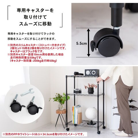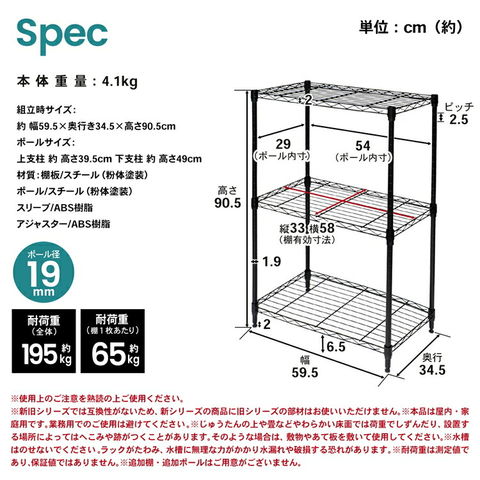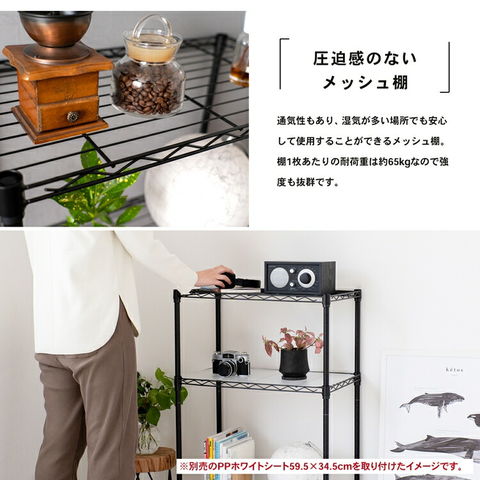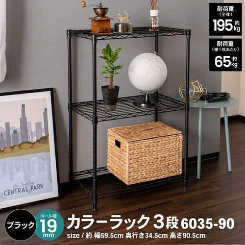 コーナンオリジナル LIFELEX カラーラック3段ブラック 19Φ 6035-90 約幅595×奥行345×高さ905