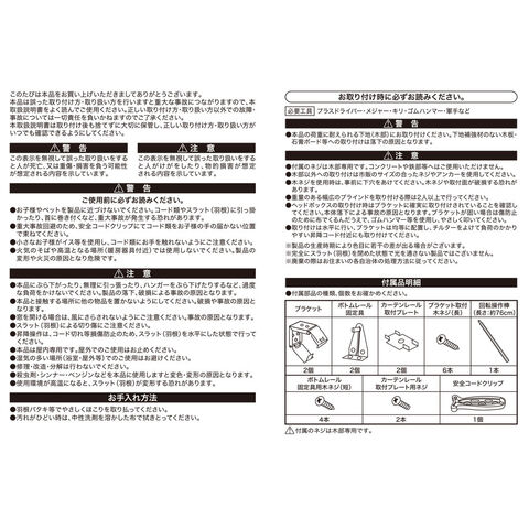 ●本品の荷重に耐えられる下地(木部)にお取り付けください。下地補強材のない木板・石膏ボード等への取り付けは落下の原因となります。