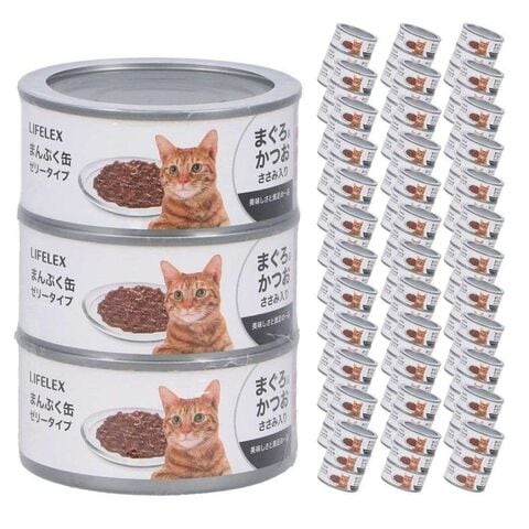 まんぷく缶 赤身ゼリータイプ まぐろ&かつお&ささみ 170g×3P ×36個セット LIFELEX