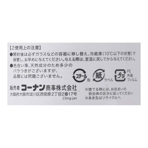 ※開封後は必ずガラスなどの容器に移し替え、冷蔵庫(10°C以下)で保管し、お早めに与えてください。与える際は、室温に戻してから与えてください。