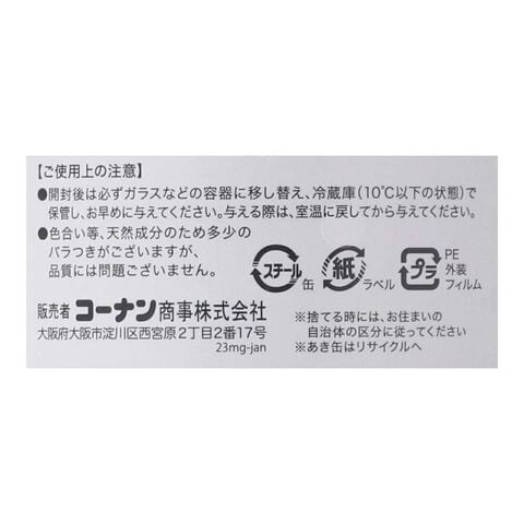 ●保証成分 粗タンパク質 11.0%以上 粗脂肪 0.8% 以上 粗繊維 1.0%以下 粗灰分 2.5%以下 水分 86.0%以下