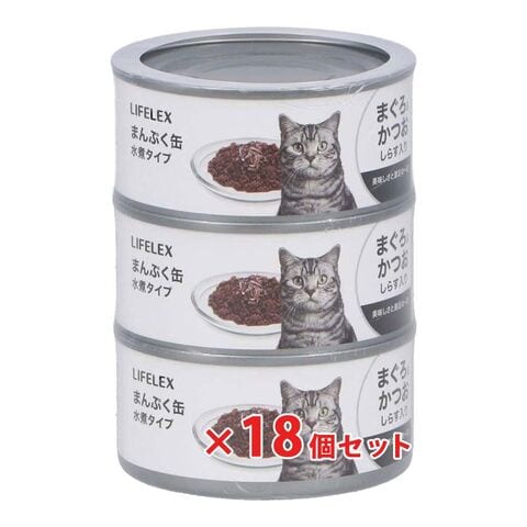 まんぷく缶 赤身水煮タイプ まぐろ&かつお&しらす 170g×3P ×18個セット LIFELEX
