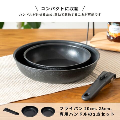 コーナンオリジナル LIFELEX ハンドルが外せるフライパン ランジェ 3点セット/IH対応 IHS-F2026H