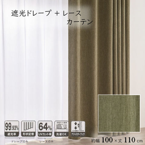 コーナンオリジナル LIFELEX 遮光4枚組カーテン 約幅100×丈110cm レース丈約108cm カーキ 幅100×丈110cm