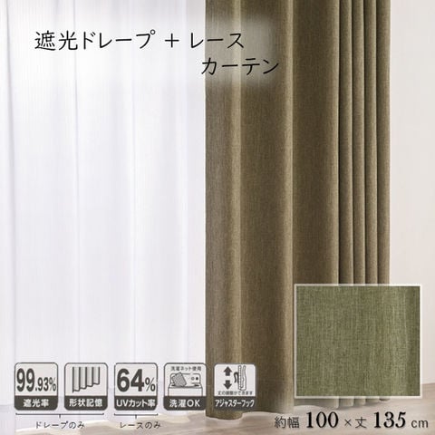 コーナンオリジナル LIFELEX 遮光4枚組カーテン 約幅100×丈135cm レース丈約133cm カーキ 幅100×丈135cm