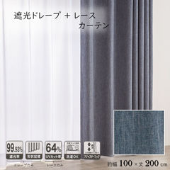 遮光4枚組カーテン 約幅100×丈135cm レース丈約133cm ネイビー 幅100×丈135cm コーナンオリジナル LIFELEX