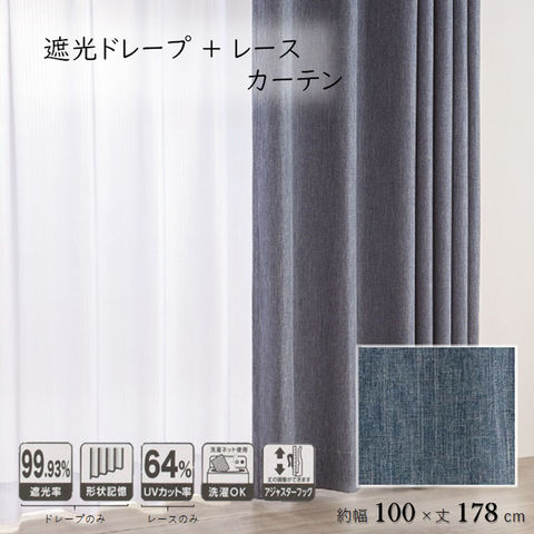 コーナンオリジナル LIFELEX 遮光4枚組カーテン 約幅100×丈178cm レース丈約176cm ネイビー 幅100×丈178cm