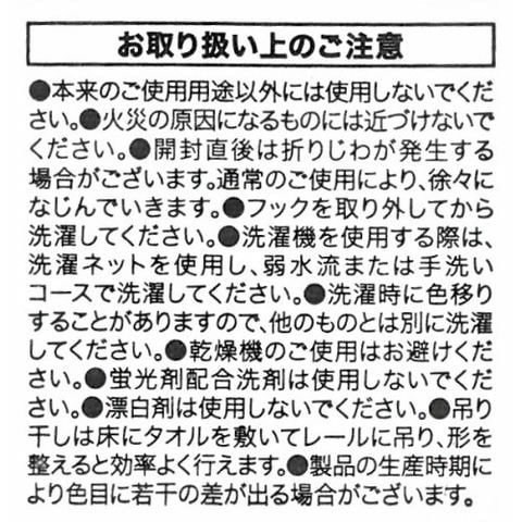 ●洗濯機を使用する際は、洗濯ネットを使用し、弱水流または手洗いコースで洗濯してください。洗濯時に色移りすることがありますので、他のものとは別に洗濯してください。
