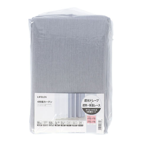コーナンオリジナル LIFELEX 遮光+遮熱・保温4枚組カーテン 約幅100×丈178cm レース丈約176cm グレージュ 幅100×丈178cm