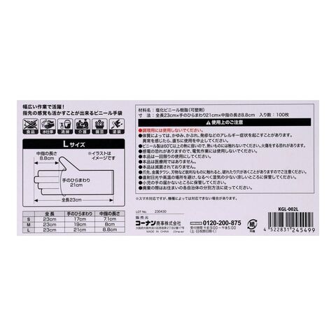 コーナンオリジナル PROACT ビニール手袋 Lサイズ 100枚入 クリア