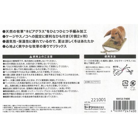 コーナンオリジナル LIFELEX 天然の牧草で編み込んだ敷きマット S KH12-7400 S 約幅210×奥行き280mm