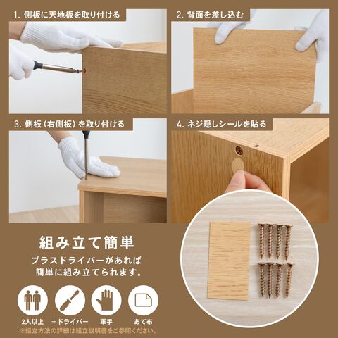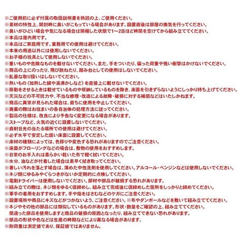 ※設置場所や商品にキズなどがつかないよう、ご注意ください。※布やダンボールなどを敷いて組み立ててください。