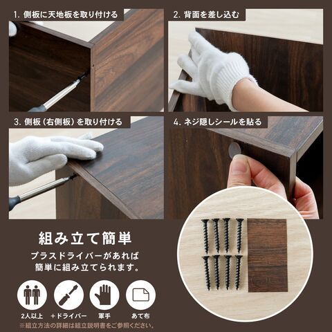 ※設置場所や商品にキズなどがつかないよう、ご注意ください。※布やダンボールなどを敷いて組み立ててください。