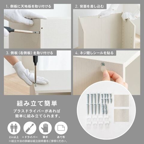 ※設置場所や商品にキズなどがつかないよう、ご注意ください。※布やダンボールなどを敷いて組み立ててください。