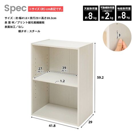 2段カラーボックス 可動棚 ウッドホワイト β LIFELEX