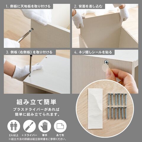 ※設置場所や商品にキズなどがつかないよう、ご注意ください。※布やダンボールなどを敷いて組み立ててください。