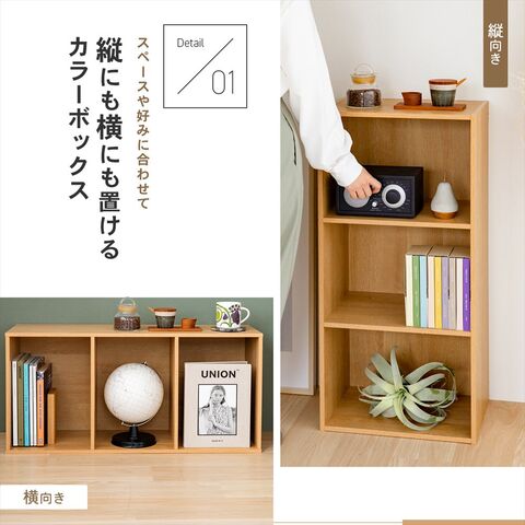 縦にも横にも置けるカラーボックス