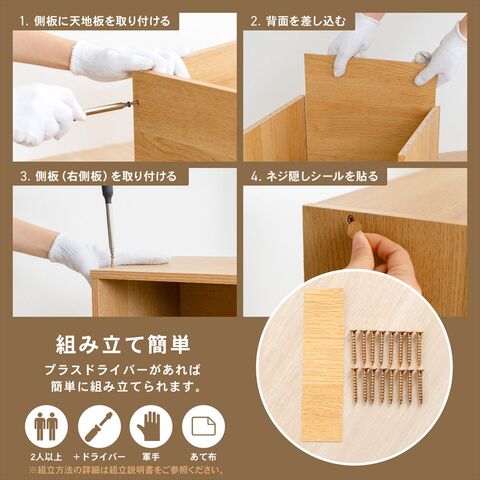 ※設置場所や商品にキズなどがつかないよう、ご注意ください。※布やダンボールなどを敷いて組み立ててください。