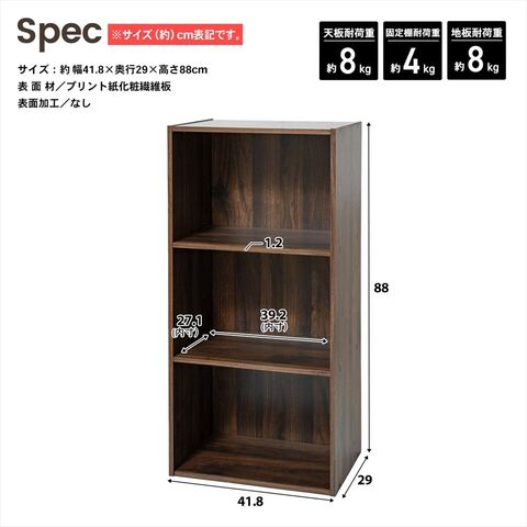 LIFELEX 3段カラーボックス 可動棚 オーク β