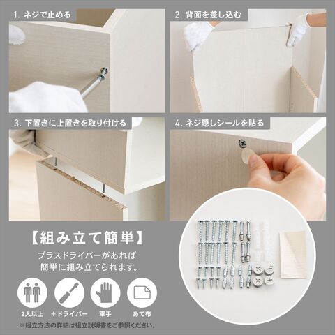※設置場所や商品にキズなどがつかないよう、ご注意ください。※布やダンボールなどを敷いて組み立ててください。