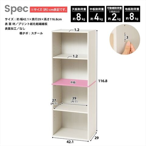 4段式の可動棚付きカラーボックスです
