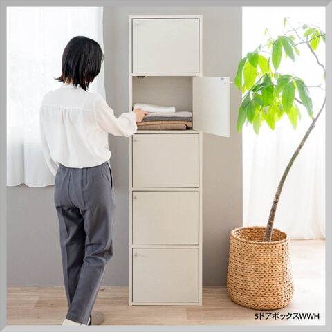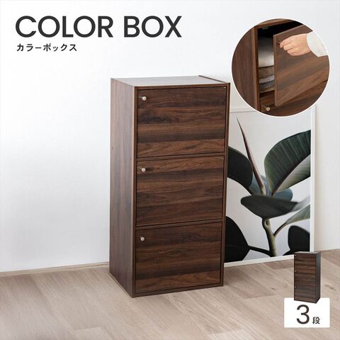 ドア付きの3段カラーボックスです