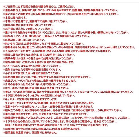 ※設置場所や商品にキズなどがつかないよう、ご注意ください。※布やダンボールなどを敷いて組み立ててください。